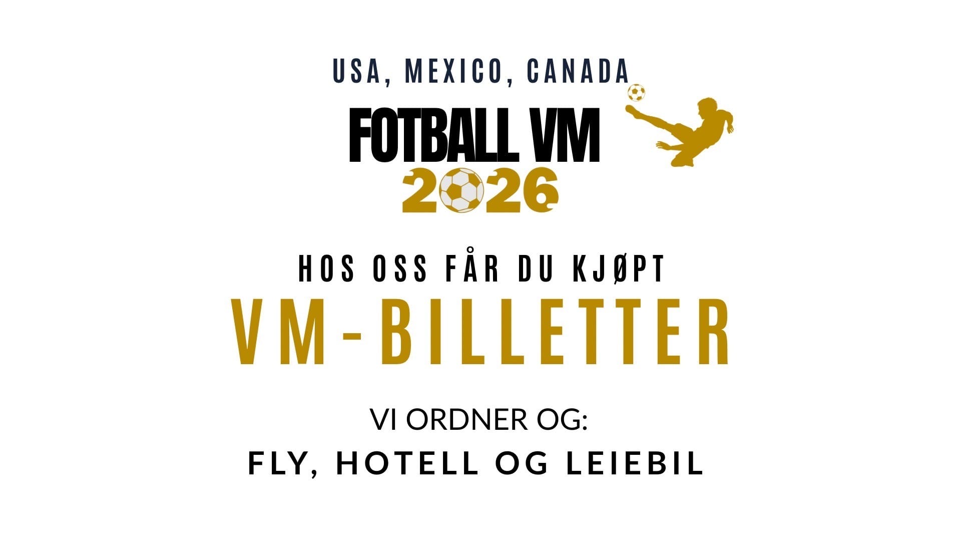 Opplev fotballfesten i Nord-Amerika sommeren 2026. Hos Cowboyreiser kan dere sikre dere VIP billetter til VM 2026 eller kombinere dem med et komplett reiseopplegg for både private og bedrifter, med fly, hotell, leiebil og kampopplevelser i noen av verdens mest spennende byer. For dere som allerede har billetter, hjelper vi gjerne med alt rundt selve reisen.